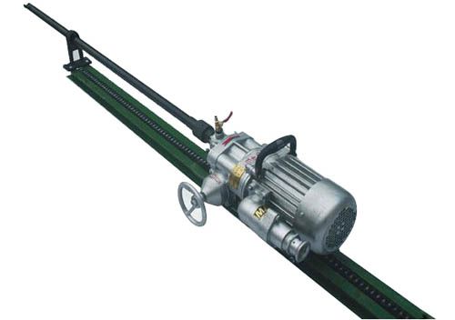 KHDY型礦用電動巖石鉆(以下簡稱鉆機)系鉆巖石爆破孔的一種工具。 1.鉆機可用鉆架配合,可水平向前或傾斜向上等任意方向鉆孔,也可垂直向上。 2.為了延長鉆頭的使用壽命及改善操作者的勞動條件,采用濕式鉆孔水排粉,也可采用螺旋葉片鉆桿干式排粉。 3.鉆機在作業(yè)中,只須操縱手輪,鉆機即可自行推進和快速退回。 4.配用直徑80麻花鉆桿或者直徑34圓鉆桿,塔形鉆頭。